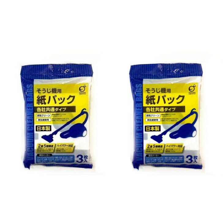 商品情報細かなゴミもキャッチ!掃除機用 紙パック掃除機用 紙パックのスペア 3枚入り。2重5層構造で細かなホコリもキャッチ、排気がキレイ。吸引力の高い掃除機にも対応。再生紙を使用で、地球にやさしい。材質:紙日本製【掃除機用 紙パック】そうじ機用紙パック 3枚入り×2袋 【1000 ...